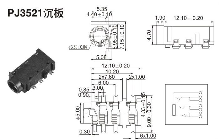 耳機插座/PJ3521沉板貼片本產品廣泛用于,玩具,電動玩具,玩具公仔,防盜器,家用電器,手機數碼,電子通訊,電子游戲機,汽車防盜,智能化系統,電視機、MP3、耳機,等電腦通訊器材