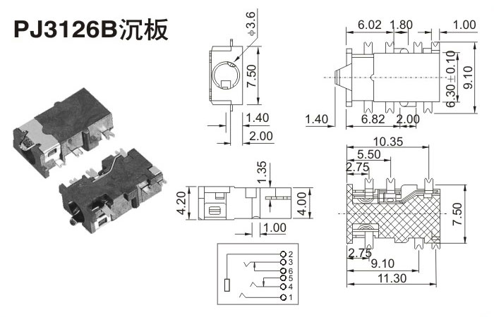 耳機(jī)插座PJ3126B沉板