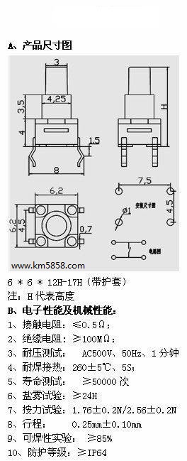 詳細介紹: 防水輕觸開關KM665H插腳 本產品廣泛用于,玩具,電動玩具,玩具公仔,防盜器,家用電器,手機數碼,電子通訊,電子游戲機,汽車防盜,智能化系統,電視機、MP3、耳機,等電腦通訊器材