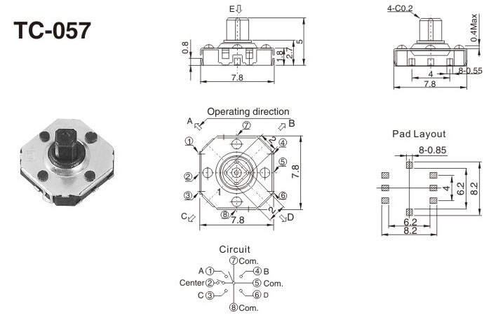 五項開關/TC-057本產品廣泛用于,玩具,電動玩具,玩具公仔,防盜器,家用電器,手機數碼,電子通訊,電子游戲機,汽車防盜,智能化系統,電視機、MP3、耳機,等電腦通訊器材
